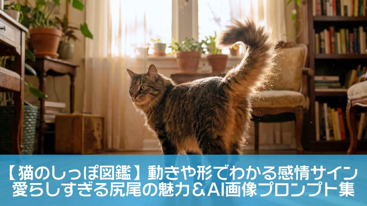 しっぽの形の種類や、動きから読み取れる猫の気持ちを解説しつつ、AI画像生成(DALL-EやMidjourneyなど)で使える「猫のしっぽ特化・高画質プロンプト集」を一挙にご紹介します。