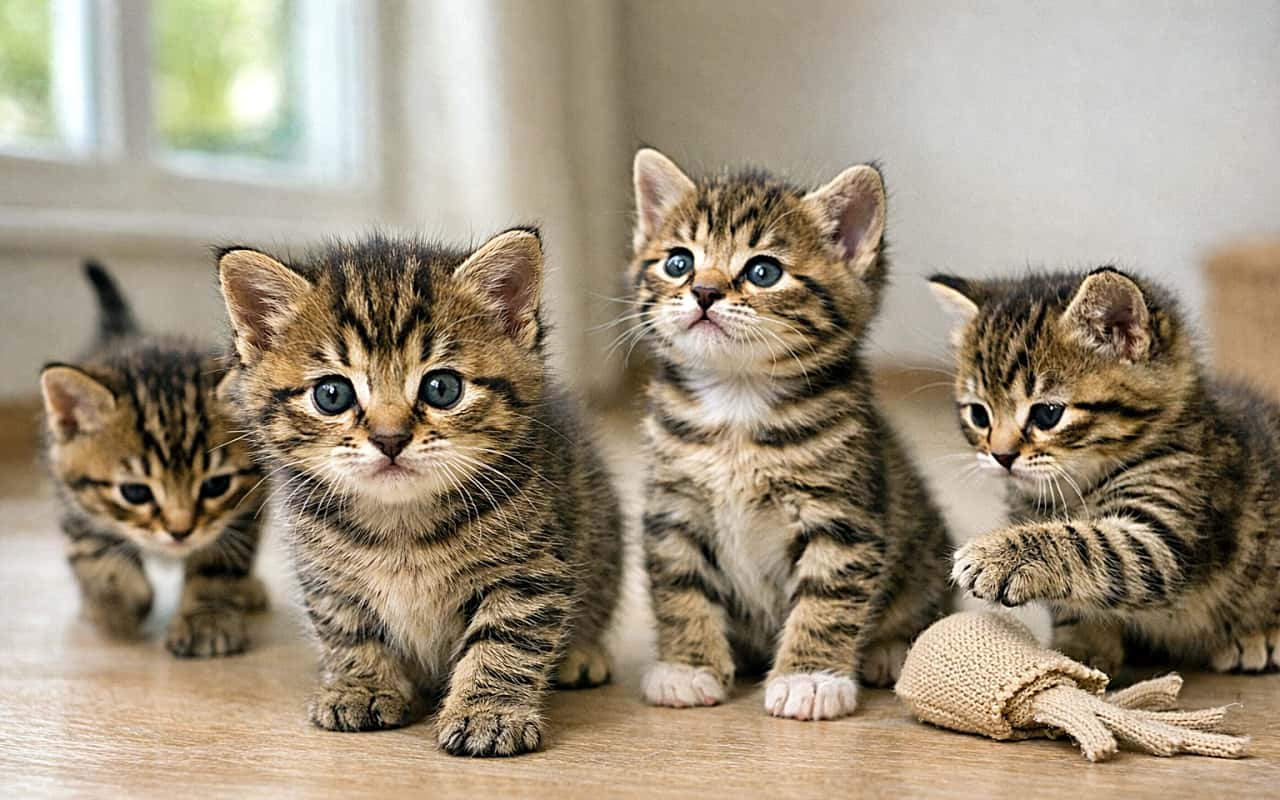 ふわふわのテディベアに抱かれて、2匹の子猫がちょこんと並んでいる。 左の子は穏やかな笑顔を浮かべ、安心しきった表情でこちらを見つめている。 その耳は柔らかく整い、光を受けて毛並みがきらめく。 右の子は元気いっぱいに口を開け、今にも声が聞こえ...